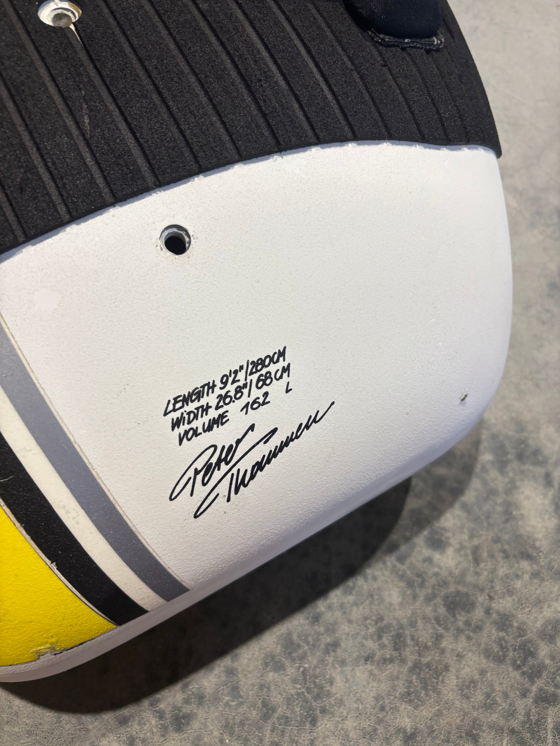 Dit exemplaar verkeert in nette staat en heeft een reparatie gehad bij de linker voetband. Wordt geleverd zonder vin.