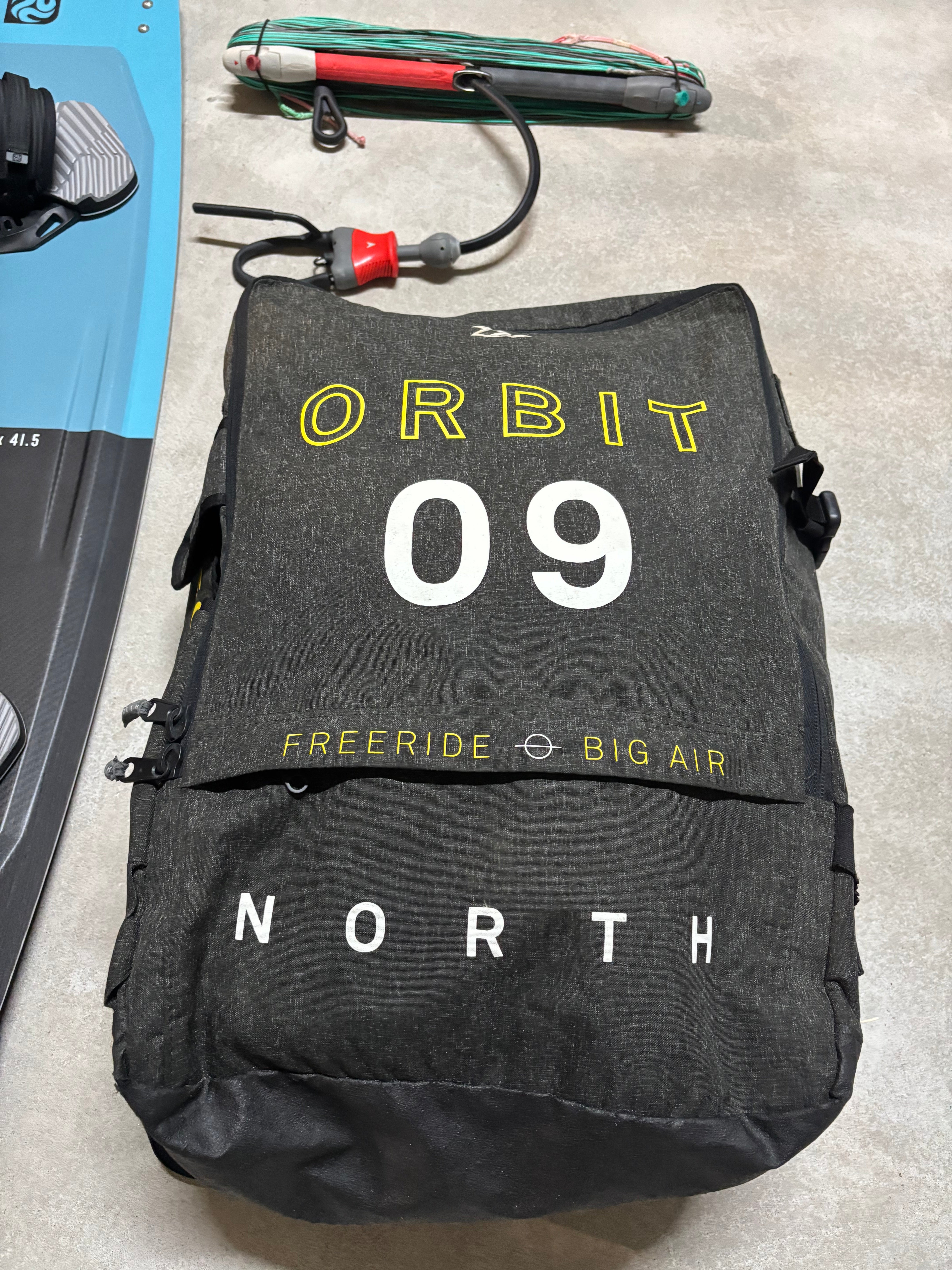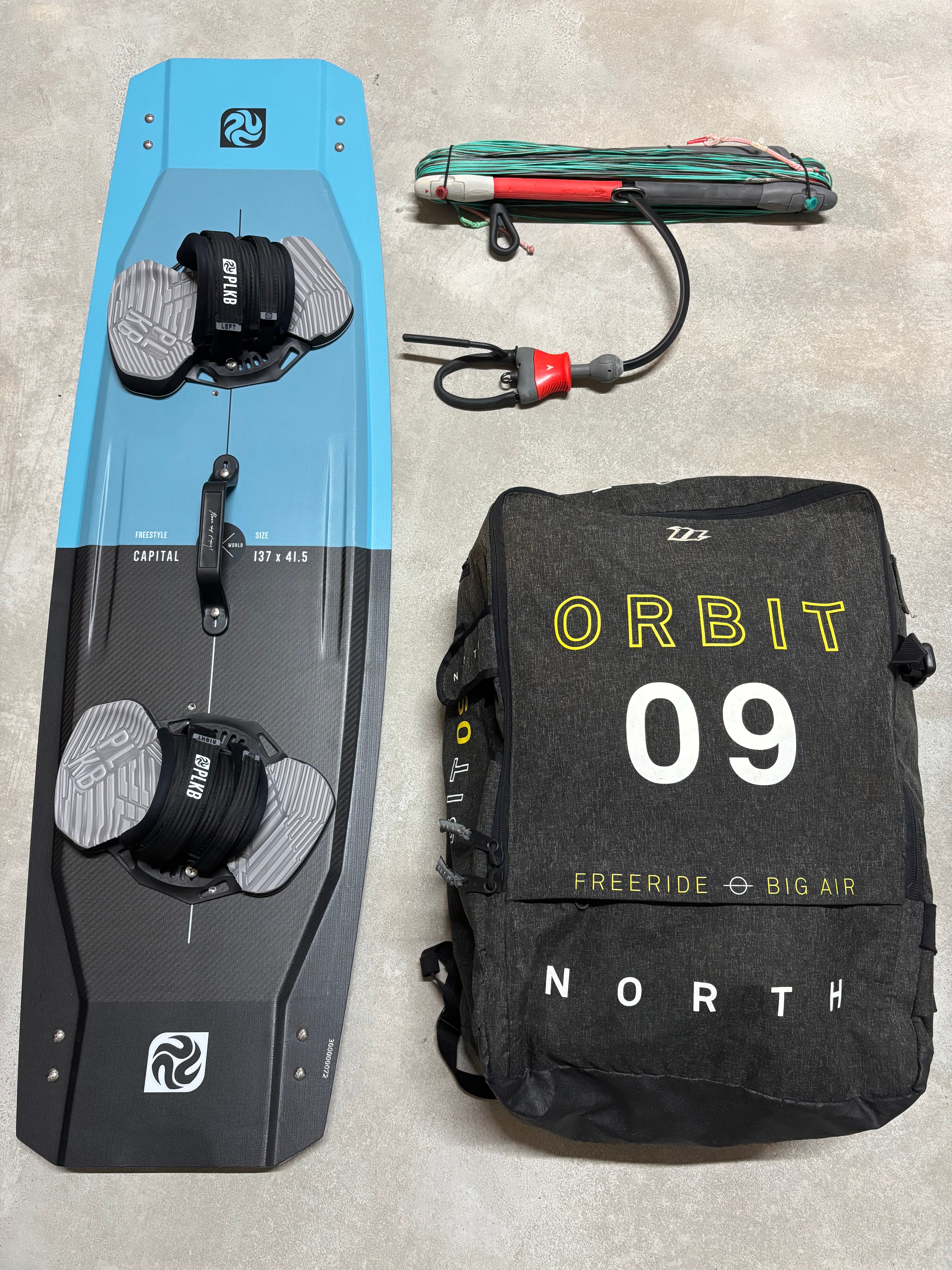Complete kitesurfset: North Orbit 9m, PLKB Capital 137x41.5 en North Navigator bar.