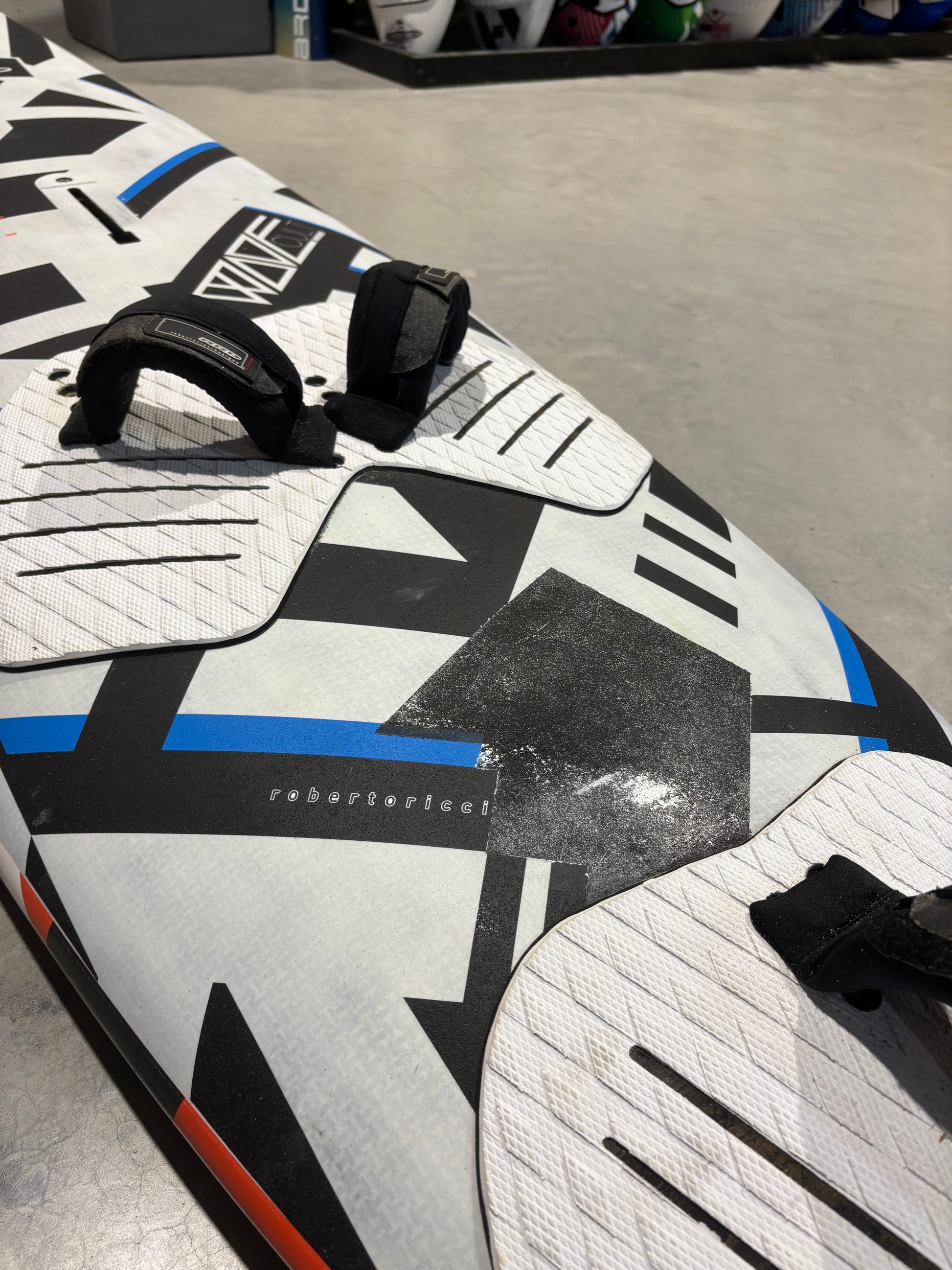 Dit exemplaar verkeert in hele nette staat en is professioneel gerepareerd tussen de voetbanden. Het board is volledig hard en klaar voor gebruik. Dankzij de reparatie wordt dit board aangeboden voor een scherpe prijs. Wordt geleverd met de originele vinnenset én een extra Select 23 cm vin.